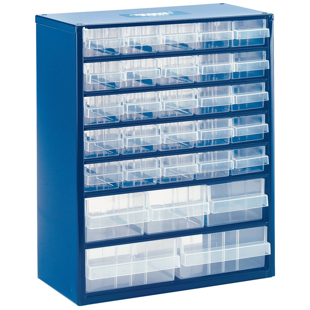 Expert Quality, steel framed organiser ideal for use in the home or workshop with 30 tough polypropylene drawers. Slotted holes are drilled in the cabinet to facilitate wall mounting. Overall size 307 x 146 x 375mm. Shrink wrapped.Payment & Security