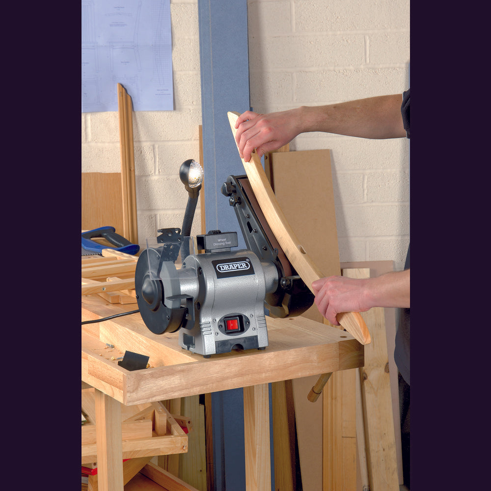 A workshop machine with one 150mm grinding wheel, 50 x 686mm sanding belt, worklight, dust extraction for sanding facility, adjustable eye protection shield, spark deflector, wheel guard, storage tray and tool rest. Fitted with approved plug and cable. Display carton.Fits - PORSCHE 928