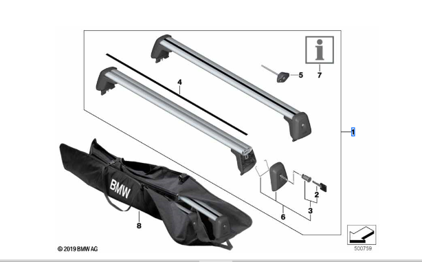 The multifunctional roof rack system can be combined with all BMW roof rack mounts and roof boxes. It is exceptionally easy to install and complies with the highest quality and safety standards thanks to its sturdy construction and anti-theft locking system. With its characteristic BMW design, the roof rack also complements the vehicle's look and design. 4 keys supplied.