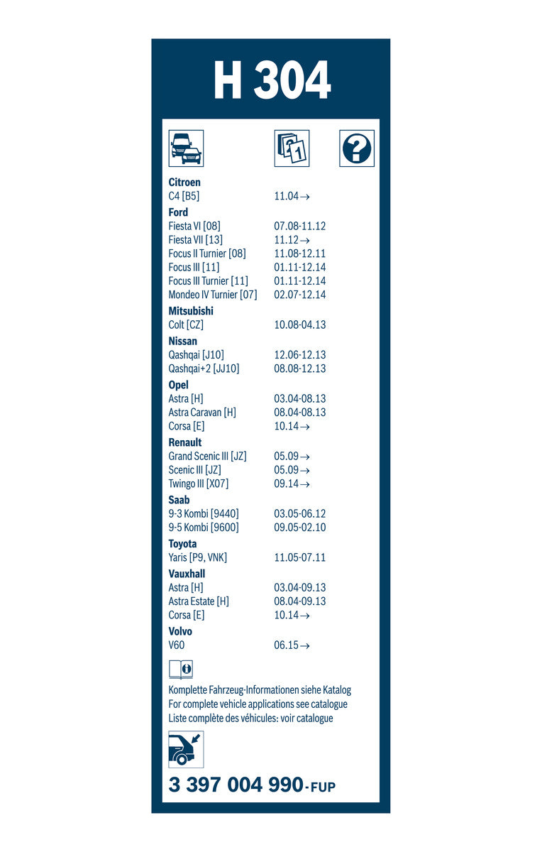 • Available with Bosch Aerotwin, plastic or conventional wiper blade technology: For a range of vehicle specific solutions