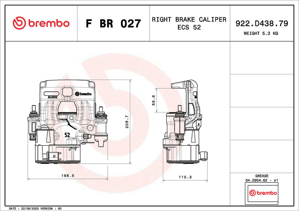 Brembo aluminium brake caliper kits are dedicated to car owners who are passionate and care deeply about the aesthetics of their vehicle. Fitment information. Rear right Axle, Caliper diameter 52mm