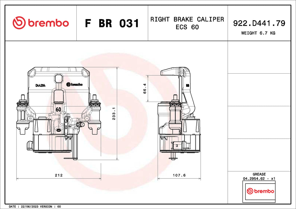 Brembo aluminium brake caliper kits are dedicated to car owners who are passionate and care deeply about the aesthetics of their vehicle. Fitment information. Rear right Axle, Caliper diameter 60mm