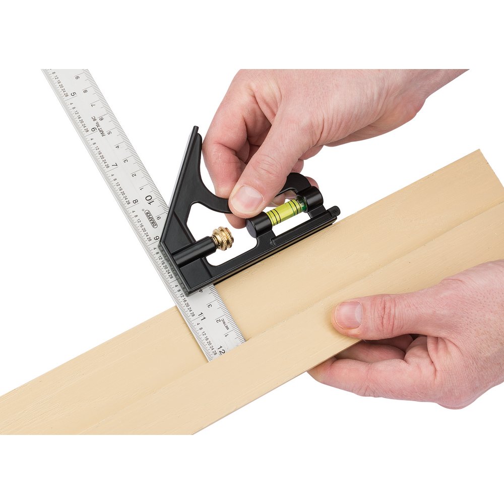 Matt black metal stock with power coated edges, centre reversible protractor and brass adjusting screws. Protractor incorporates a spirit level and is clearly graduated 0° - 180° in both directions. Stock incorporates spirit level and scriber. aluminium blade is graduated mm and 1/16" one side and 1/2mm and 1/32" on the other.Payment & Security