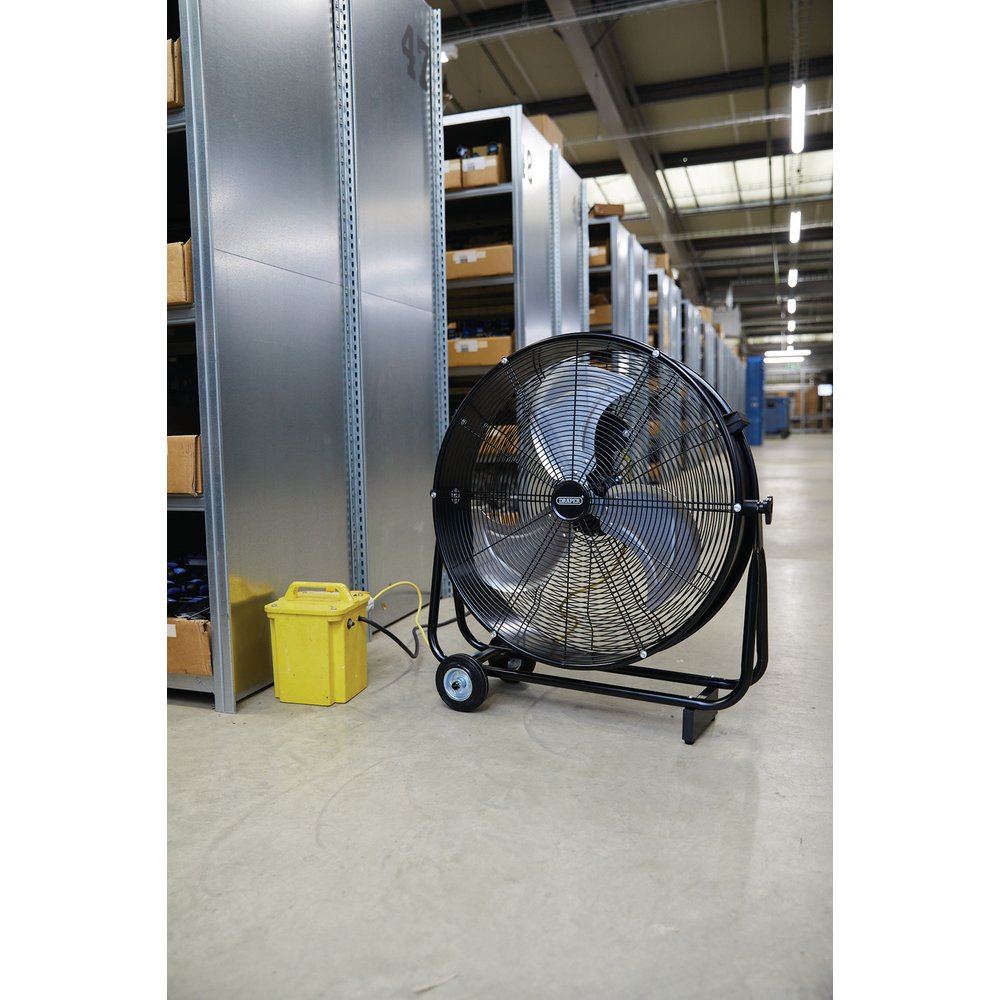 This high-velocity 24" drum fan is suitable for use in industrial, commercial and leisure space environments. The fan has three speed settings and a tilt function to direct airflow, a 125W full copper motor, as well as a handle and large rubber wheels for easy manoeuvrability.