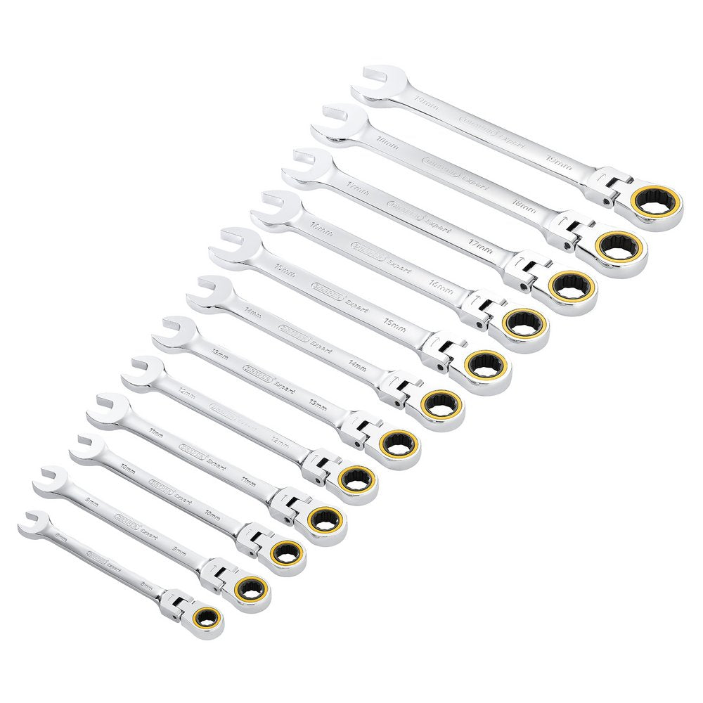 This 12-piece Draper Expert HI-TORQ® metric flexible head ratchet combination spanner set is manufactured from hardened and tempered chrome vanadium steel, with a mirror chrome plate finish for corrosion protection. The 100-tooth ratchet enables 3.6° movement and with a 180° flexible head and the open end set at 15°, these spanners are ideal for use where there’s limited space. The ring end is 12-point Draper Expert HI-TORQ®, providing a superior grip; with Draper Expert HI-TORQ®, the spanners grip the flats of the fastener rather than the corners. This gives more grip while transmitting more torque to the nut or bolt and prevents damage to the corners by spreading the load across the flats. The spanner set comes supplied in a useful storage/carry rack.Payment & Security