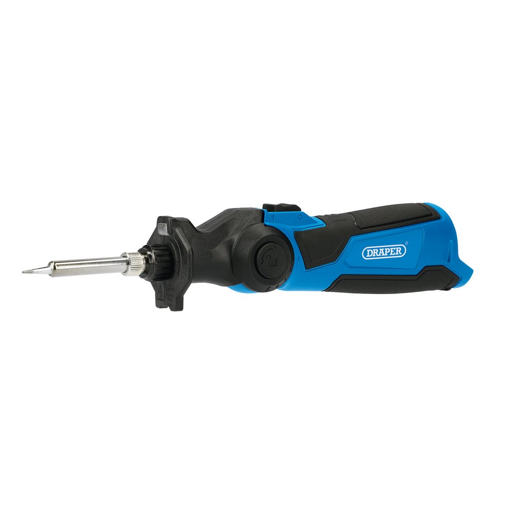 This cordless 12V soldering iron is part of the 12V Power Interchange series and is designed for heating solder for attaching or tinning electrical components, cables or conductors. It features a temperature indicator, LED light and a capacity indicator.The three-stop pivoting head offers 0, 45, 90° angle use to accommodate tighter positions and give a more comfortable and stable grip. Batteries and chargers are available separately. The 12V interchangeable battery system allows users to combine one battery with any of the tools within the 12V series (not compatible with Draper 20V).Payment & Security