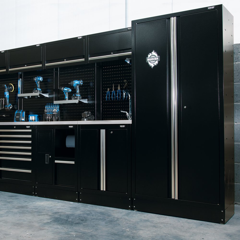 Part of the BUNKER® modular storage system. This stunningly designed premium-quality tall steel cabinet has double doors for easy access. Inside it are four fully adjustable shelves to create incredibly versatile storage. The feet of the cabinet are adjustable for optimal positioning on an uneven floor. The cabinet’s stylish matt black textured finish is highly durable, thanks to the industrial powder coating that protects against scratches, wear and corrosion. There is an integral lock for security and two keys are supplied. The cabinet requires assembly and measures W 915 x H 2,000 x D 458mm. It can be used as an individual storage cabinet or as part of the BUNKER® modular storage system, which includes 24 clever modular options. It comes supplied with all the required fittings for simple installation. For your quality assurance, all BUNKER® units include a 10-year warranty.Payment & Security