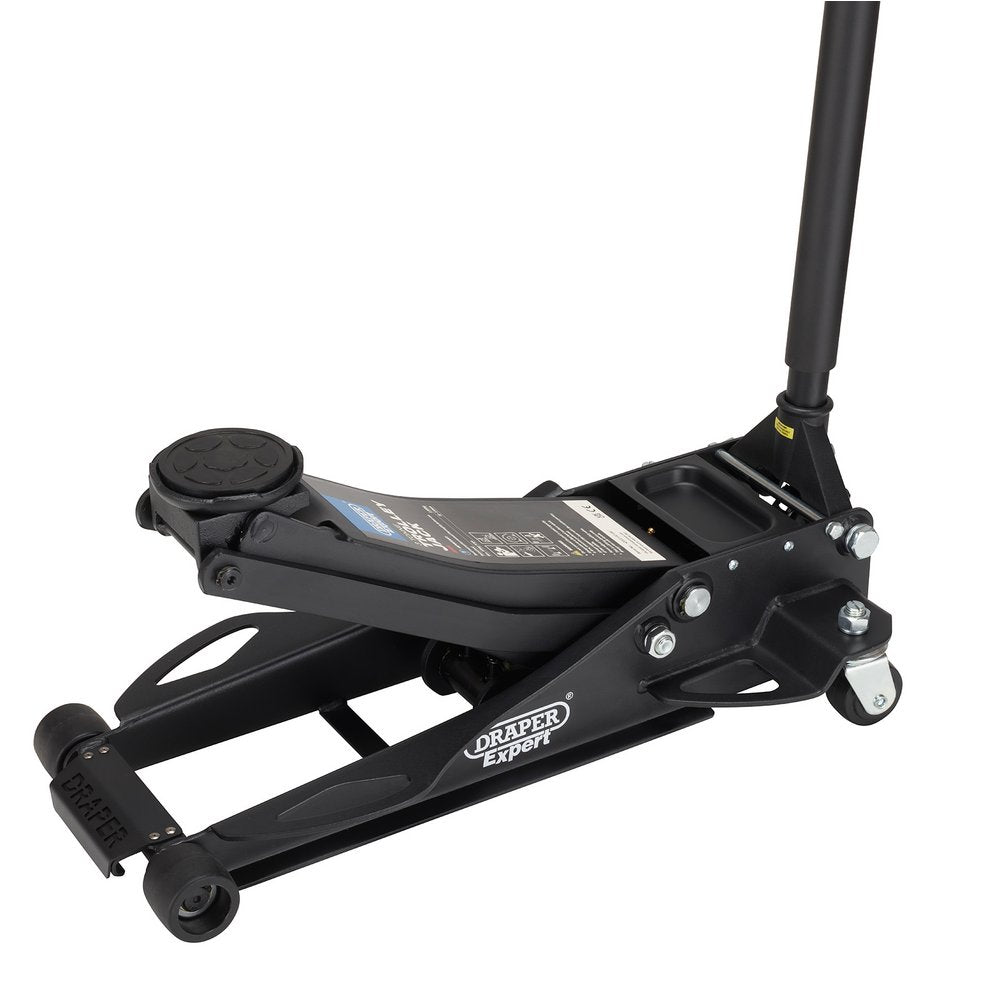 This trolley jack features an extra-fast single lifting pump to ensure it reaches full height in just 2.5 strokes. It has a low profile design making it ideal for vehicles with a reduced clearance height, enabling a lifting range from 78-510mm. There is an integrated rubber saddle pad to prevent damage to the underside of the vehicle when in operation. Fitted with hardwearing nylon wheels with rear swiveling castors, for quiet and smooth operation. These wheels also prevent damage to garage floors. There is a safety valve to prevent the jack from overloading.Payment & Security
