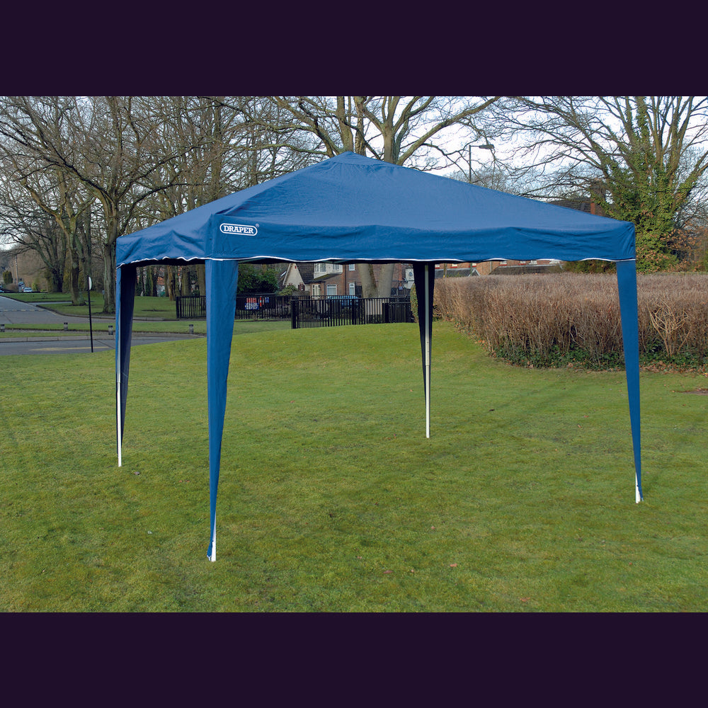 Manufactured from durable splashproof material. Steel legs and easy build up concertina frame for easy erection with guy ropes and floor pegs for rigidity. Ideal for commercial, domestic and outside work projects. Height to centre 2.5m. Packed in storage bag for easy portability.
