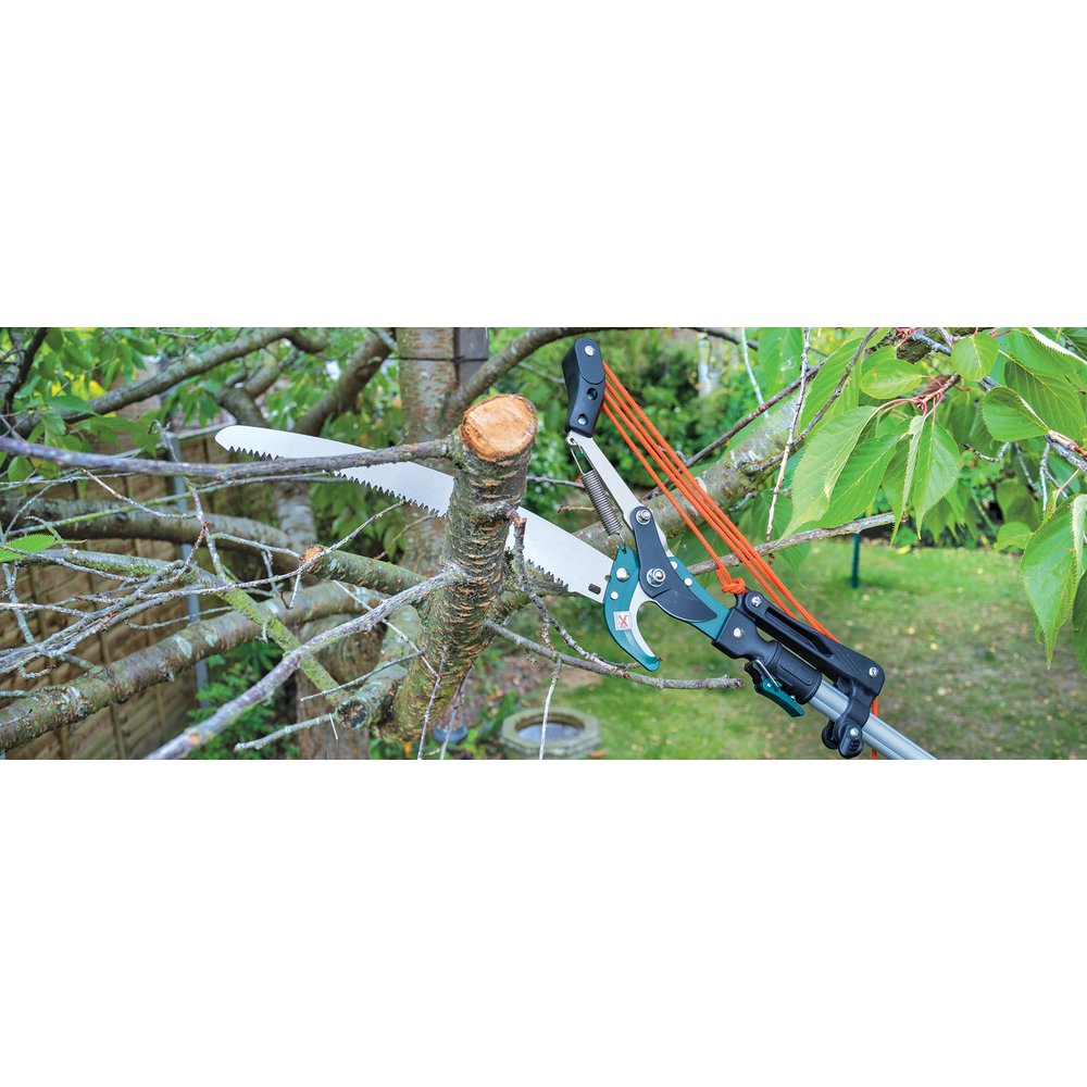 Expert Quality, incorporates four position lock telescopic aluminium profile pole extending from 1.5M to 2.5M with heavy duty hand grip, detachable curved pruning saw blade 355mm long and nylon cord-operated cutting blade.Payment & Security
