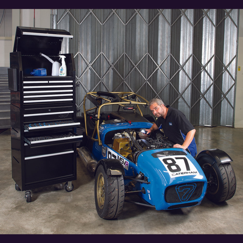 Expert Quality, six drawer top tool chest. Manufactured from thick sheet steel with a protective powder coated finish. Drawers are fitted with an aluminium trim, 3mm EVA foam linings, heavy duty auto retention ball bearing runners delivering a smoother operation and a secure locking system Supplied with two keys. The reinforced lid is fitted with supportive gas struts, plastic document holder and two soft grip handles. Each tool chest is also Supplied with a 6mm EVA top mat on pallet.