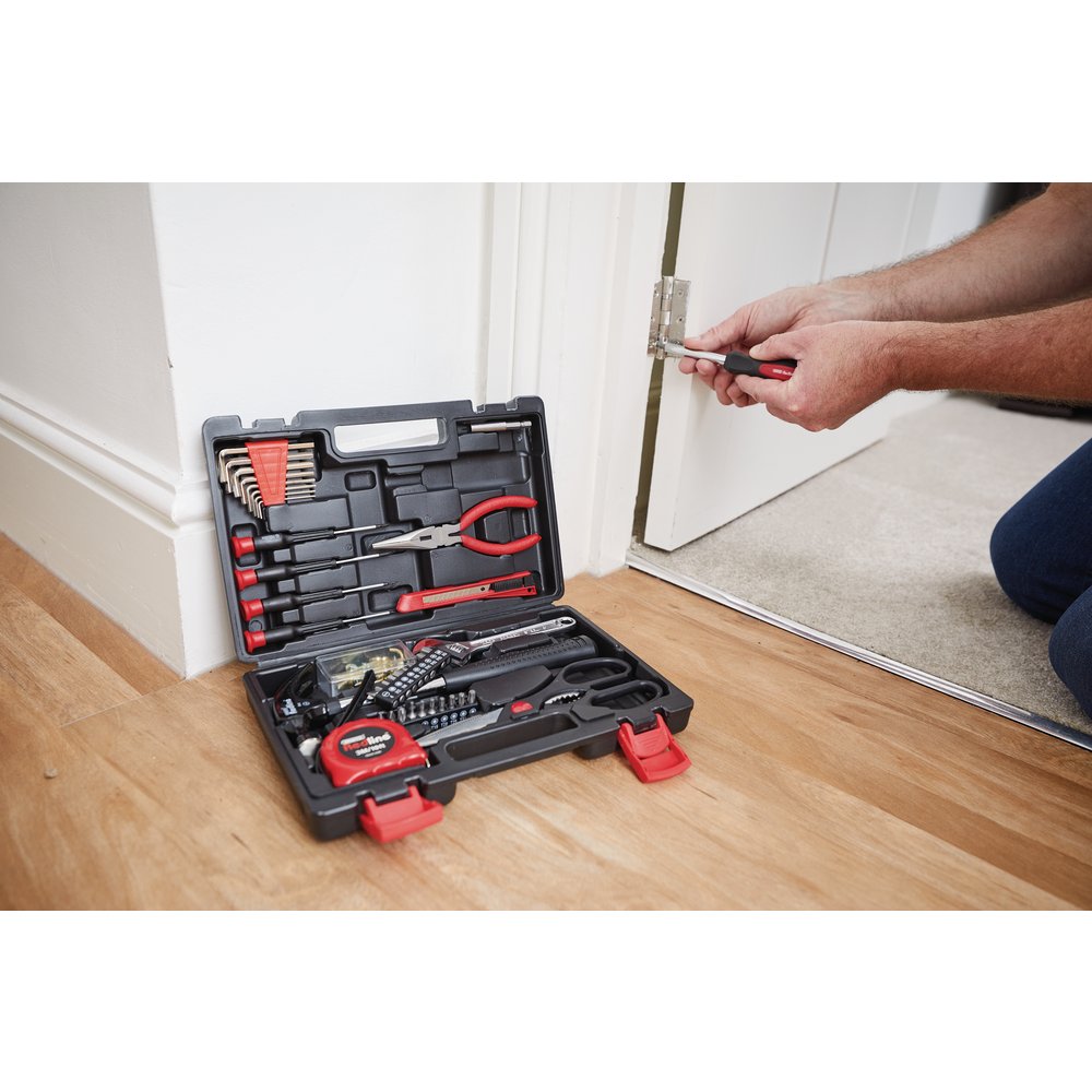 Draper Redline selection of commonly used hand tools ideal for use around the home arranged inside a storage case. Featuring screwdrivers, long nose pliers, adjustable wrench, hammer and measuring tape. All the tools are supplied inside a blow moulded plastic storage case.Payment & Security