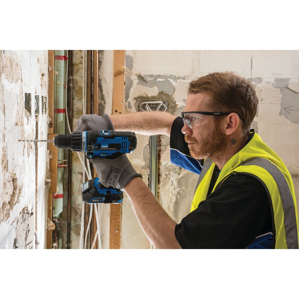 Features: Part of the Draper Storm Force 20V Power Interchange series, 3 functions; Drill, Screwdriver, Hammer, 13mm keyless chuck, Two speed gearbox with 22 torque control positions, Variable speed control with electronic brake, Battery level indicator, Spindle Lock, LED worklight, Supplied with 2x 2Ah batteries and a quick one hour charger. Draper Storm Force® 20V interchangeable battery system allows you to combine one battery with any of the tools within the 20V Storm Force series (not compatible with Draper Storm Force® 10.8V).Payment & Security
