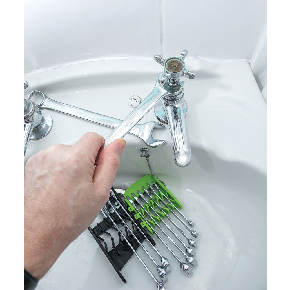 Professional Quality, forged from chrome vanadium steel hardened, tempered and chrome plated for corrosion protection. Jaws have accurate face openings and are offset at 15°. Sold loose.
