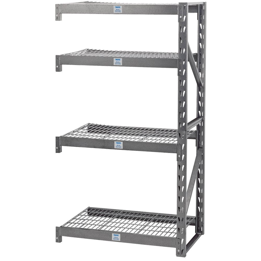Expert Quality, four shelf extension unit of robust construction manufactured from high quality steel ideal for industrial or domestic use. Wire construction shelves avoid collection of dust. Modular in design, it conjoins Draper Shelving Unit Stock No. 05230 using a common upright. Each shelf can carry up to 364kg (evenly distributed) giving a total of 1456kg. Easily assembled, instructions supplied. Carton packed.Payment & Security