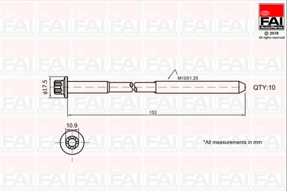 Criteria Hole Pitch 1/21.25 Length153 mm Thread Size M10 Bolt Head-/ Nut Design Male Torx Quantity10