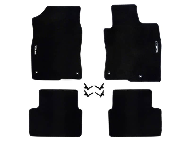 Genuine Honda Civic 5 Door Elegance Carpet Mats 2017 OnwardsBlack – These elegant and comfortable fitted tufted carpets, with black nubuck binding, have a woven “Civic” emblem for durability.Includes: front and rear mats.Payment & Security