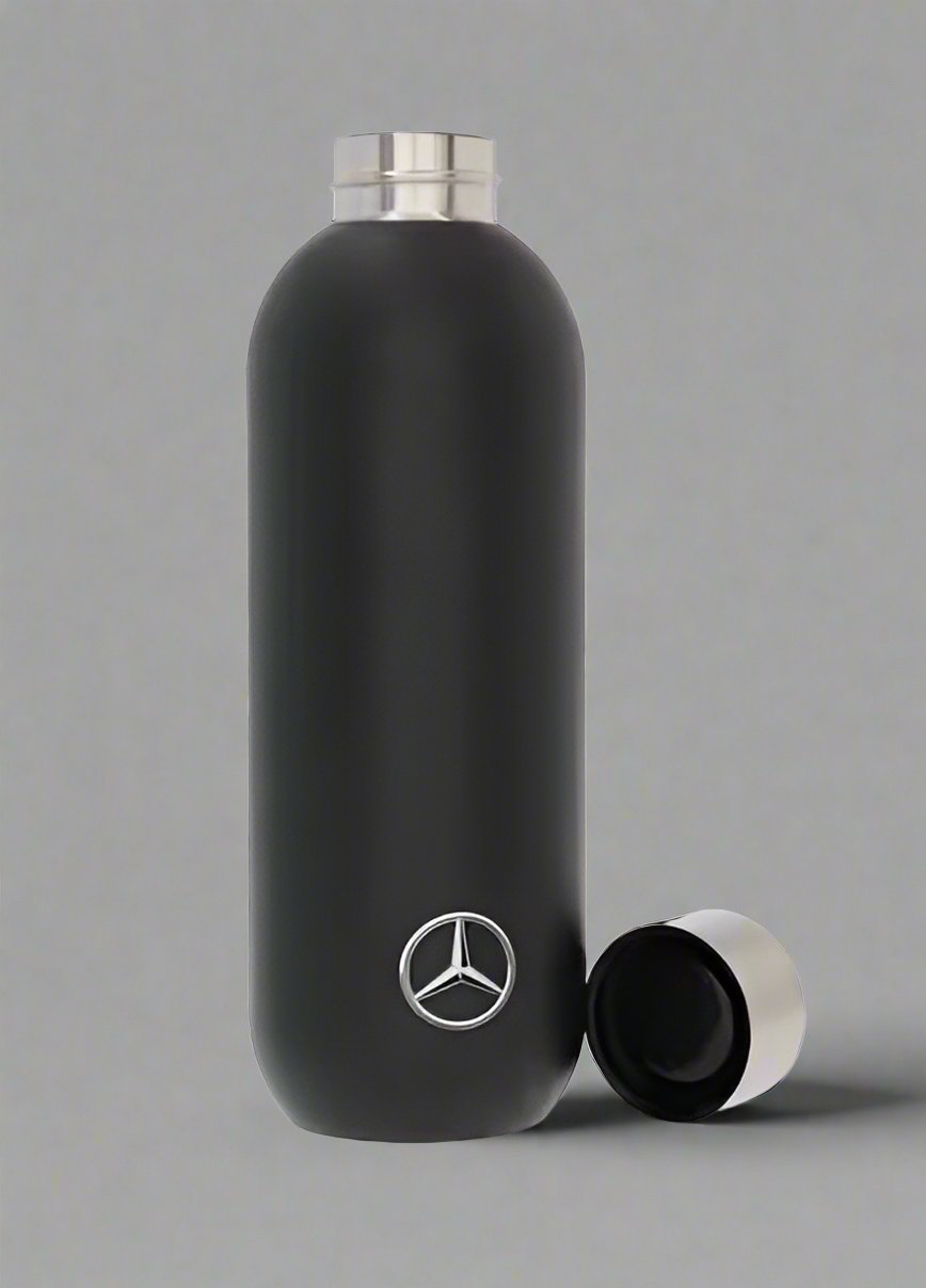 Stylish and warm through the winter: The black knitted hat made from organic cotton is made from fine rib knitted fabric and with its warming covering defies even icy winter temperatures. A silver-colored printed 3D Mercedes star completes the design of the cap and makes the look perfect.