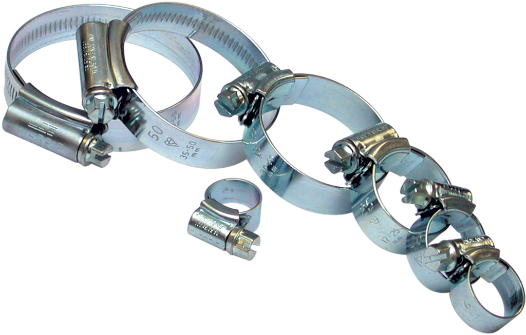 Heavily zinc plated mild steel. Sizes: 12* (000), 16* (M00), 20* (00), 22 (0), 25 (0X), 30 (1A), 35 (1), 40 (1X), 50 (2A), 55 (2). * = 10 mm banding