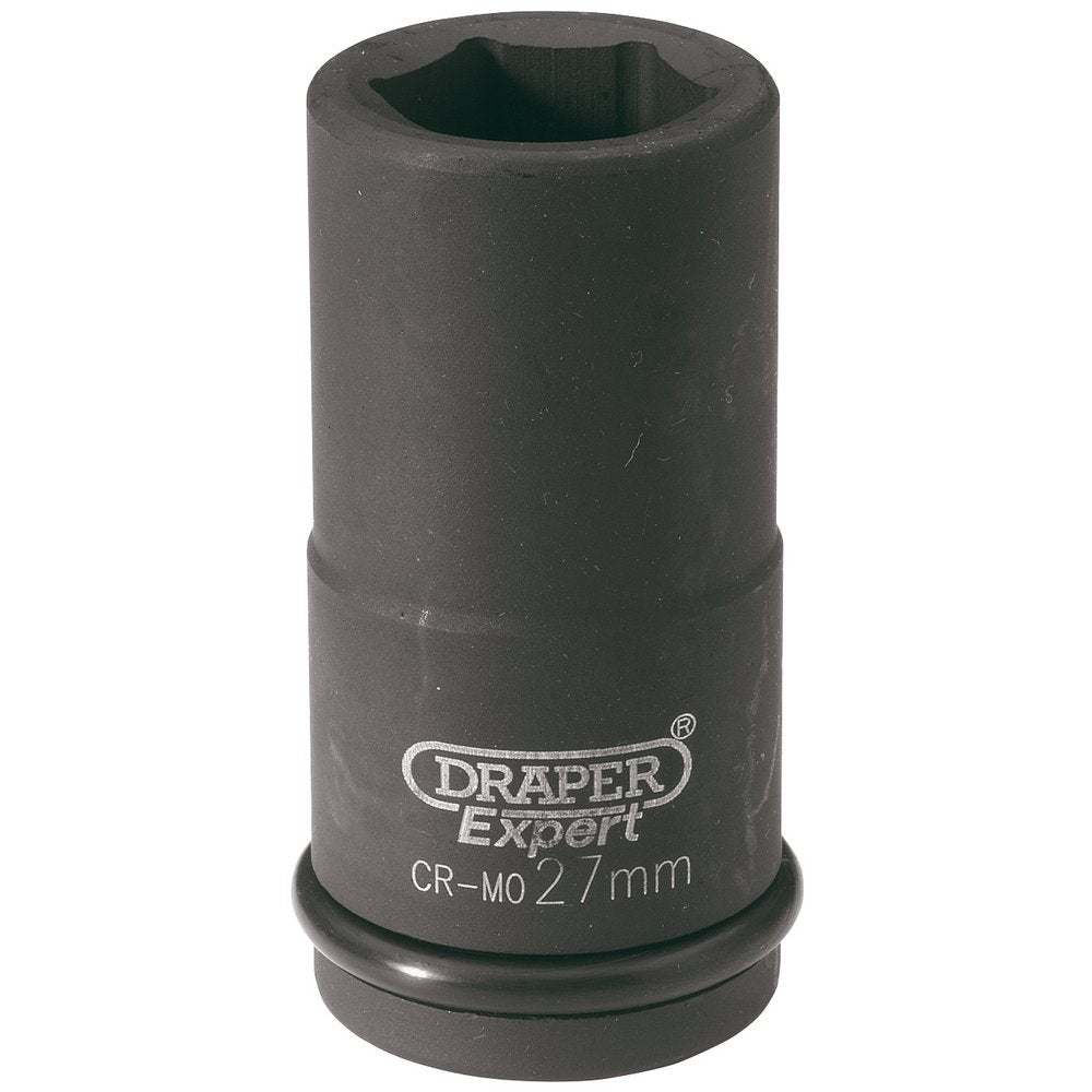 Expert Quality, 6 point socket forged from chrome molybdenum hardened, tempered and chemically blacked for corrosion protection. Supplied with pin and ring. These socket are for use with air, electric or manual impact wrenches. Packed in polythene bag with barcode.