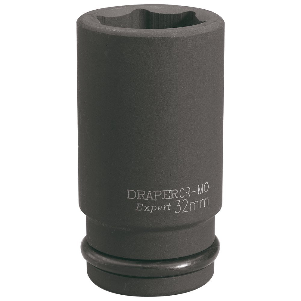 Expert Quality, 6 point socket forged from chrome molybdenum hardened, tempered and chemically blacked for corrosion protection. Supplied with pin and ring. These socket are for use with air, electric or manual impact wrenches. Packed in polythene bag with barcode.
