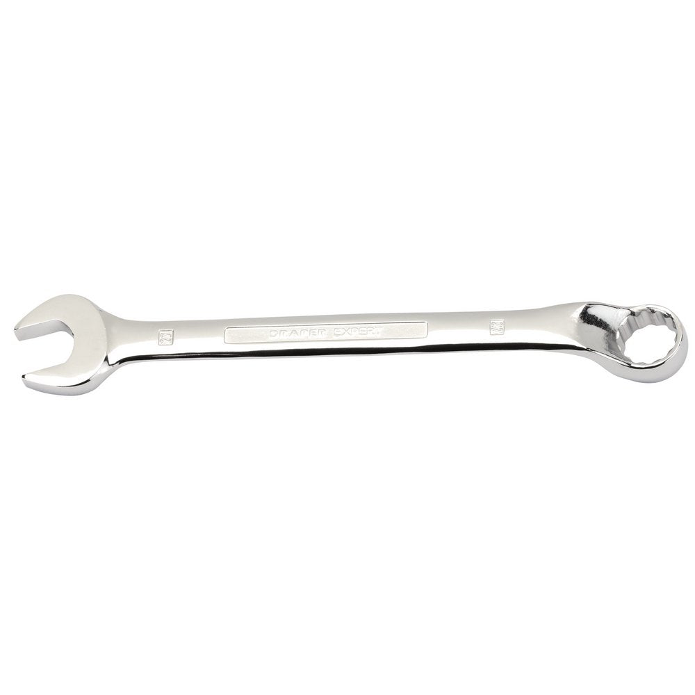 Expert Quality, with Draper Expert HI-TORQ® deep offset ring end cranked at 15°. Open end set at 15°. Long pattern forged from chrome vanadium steel, hardened, tempered, chrome plated and fully polished throughout.