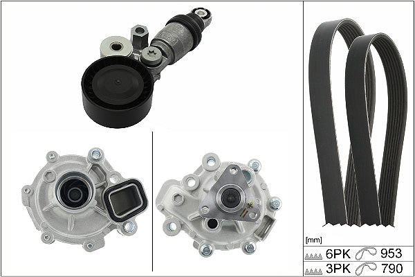 INA Water Pump + V-Ribbed Belt Set - Part No - 529037130