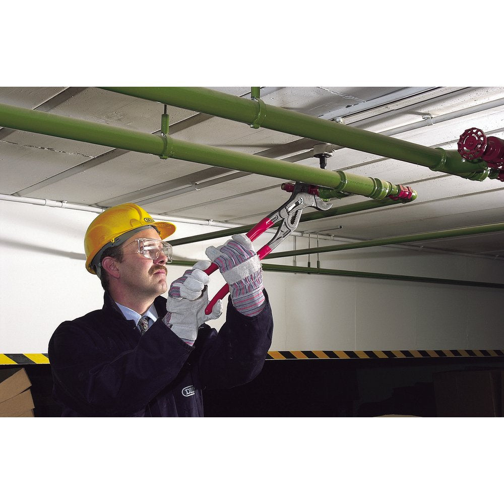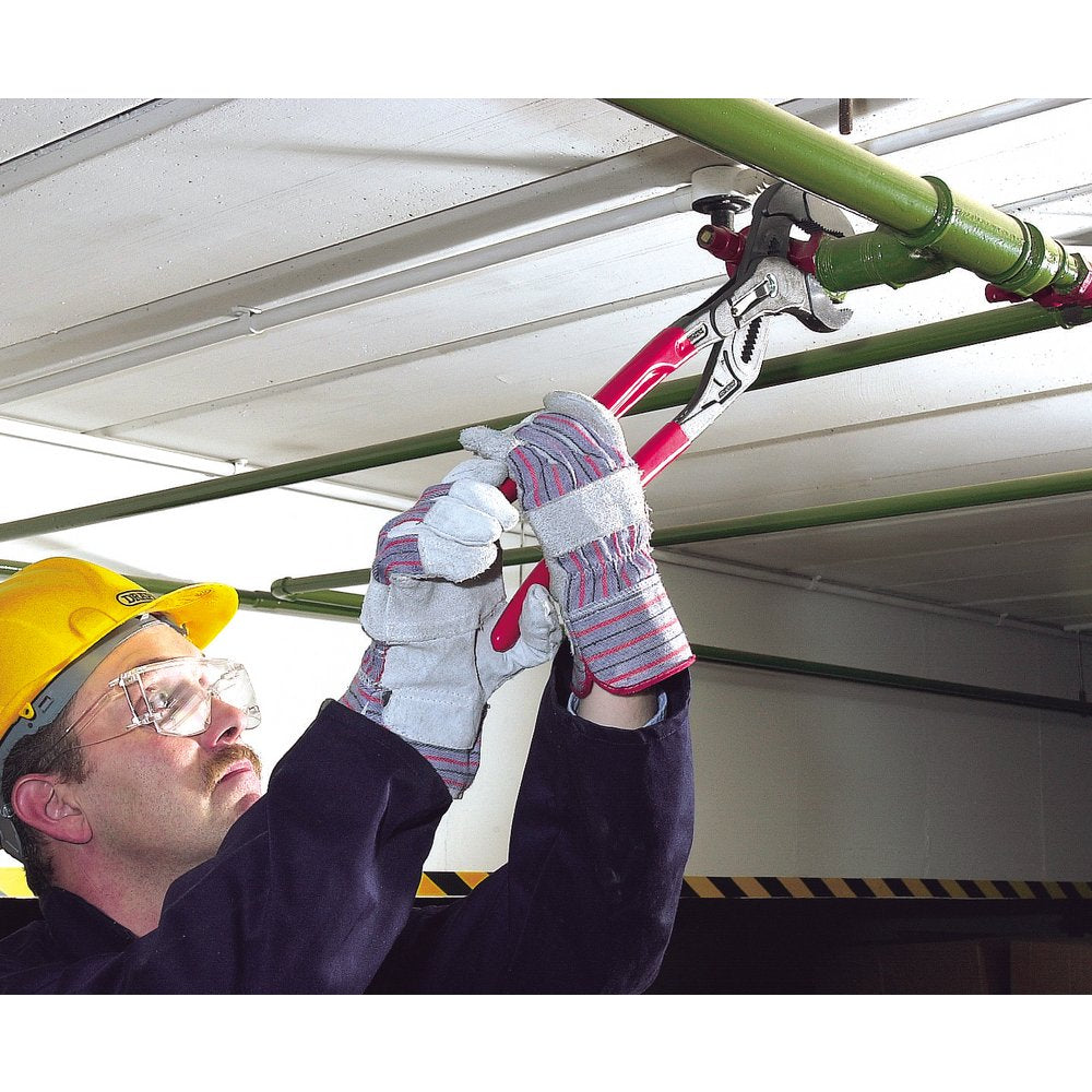 Professional Quality, manufactured from chrome vanadium electric steel, oil hardened and tempered, with smoothly ground jaws, joint faces and an accurately formed box joint with safety stop. The parallelogram - shaped gripping surfaces have specially hardened teeth to 61HRC for positive grip on pipes and nuts. One hand press button adjustment. Plastic coated handles with slip guards for extra safety. Has 'no - nip' feature which prevents handles locking together and damaging users' hands.