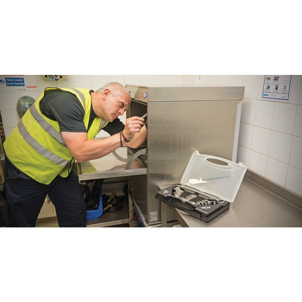 Professional Quality, forged from stainless steel hardened, tempered. Bi - hexagon ring and jaw offset at 15°. These spanners are aimed at applications where cleanliness is paramount, specifically on stainless steel fittings where a ferrous based spanner would transfer material to the fixing, promoting the formation of rust. With no need to plate the spanner there is no danger of chrome plate flakes contaminating the work area.Fits - VOLVO 340-360