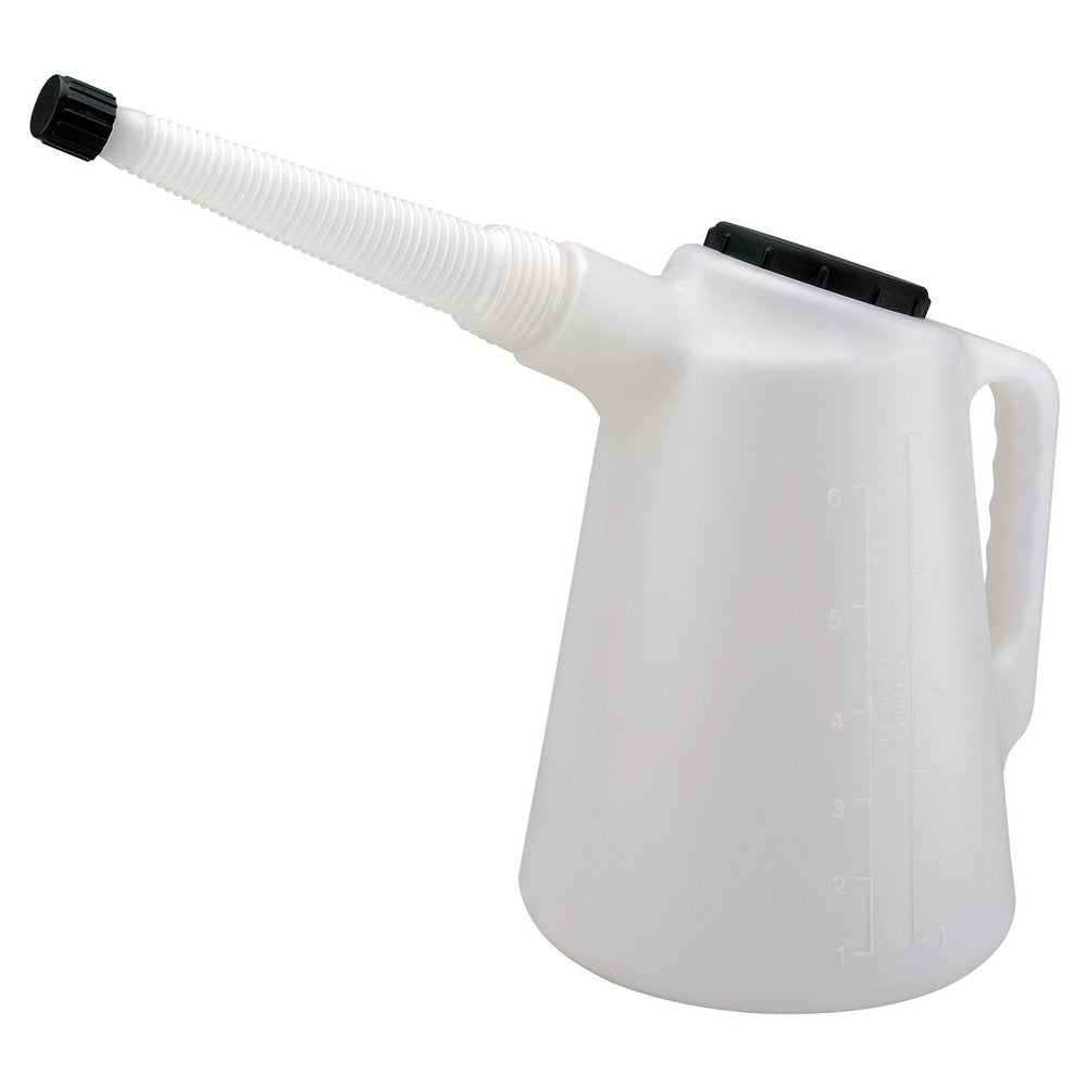 High density polyethylene. Resistant to diesel/petrol, oils and most acids. Flexible spout with carrying handle and screw top lid. Metric and US imperial graduations on jug body.Payment & Security