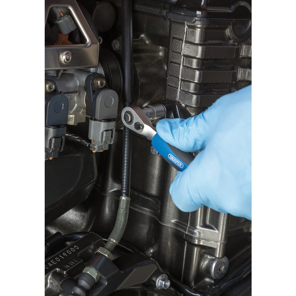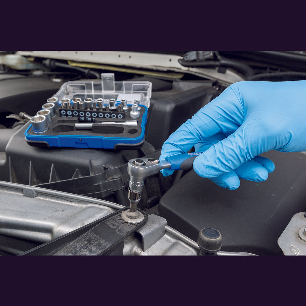 Six point socket made from chrome vanadium steel that's hardened and tempered with a satin finish. Supplied with a 72 tooth reversible soft grip ratchet and accessories. Packed in a plastic storage case.Payment & Security
