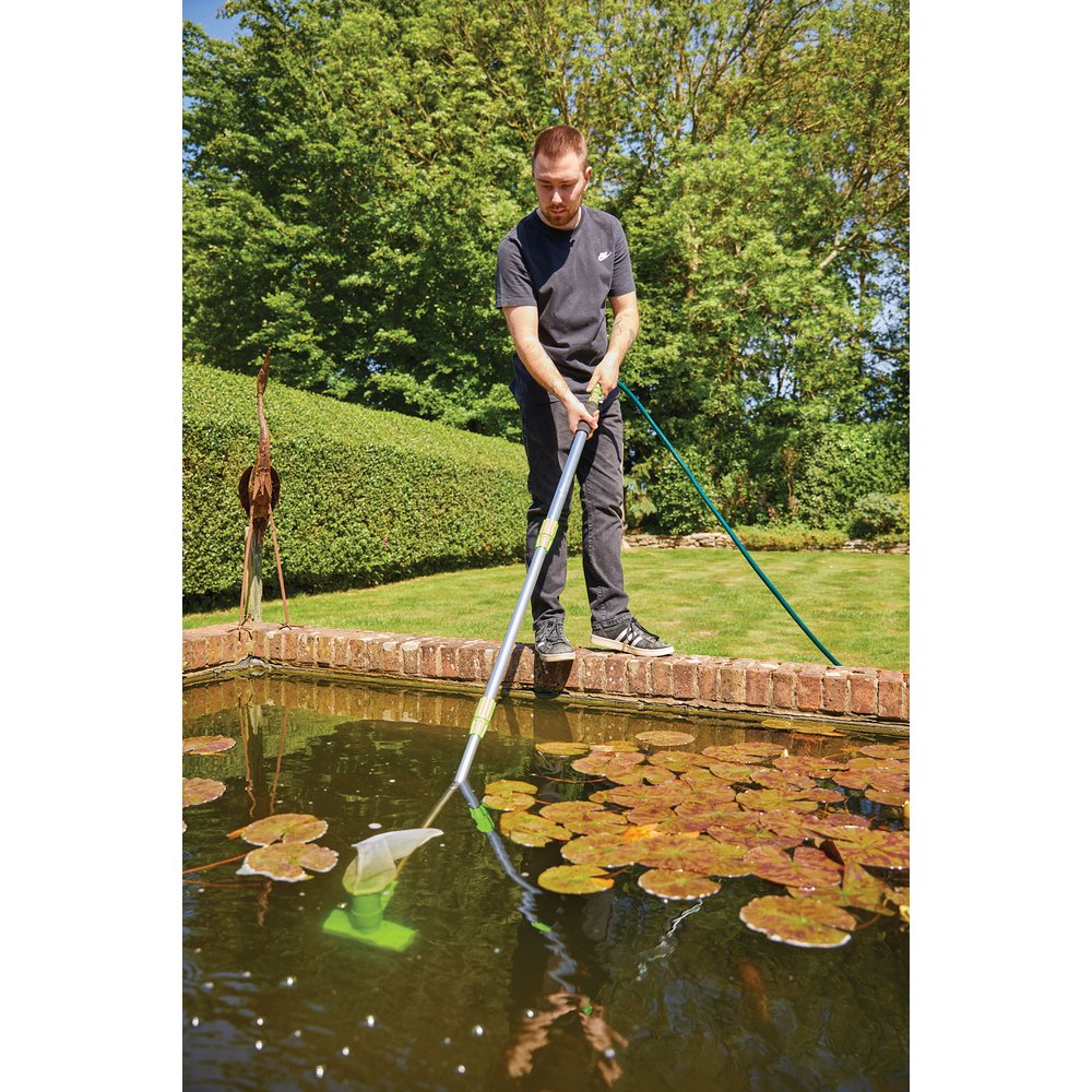 This four-piece kit is a convenient and practical tool for cleaning ponds and pools. It removes dirt from the bottom of the pond or pool using a water filtration vacuum system, with the debris collecting inside the supplied filter bag. The telescopic extending handle provides a maximum length of 1.7m to enable the suction head to reach the bottom of the pond or pool. The handle is made from strong aluminium, making it lightweight for ease of use. The vacuum suction head is made from impact-resistant polypropylene. There is also a skimming net for removing debris floating on the water surface.Payment & Security