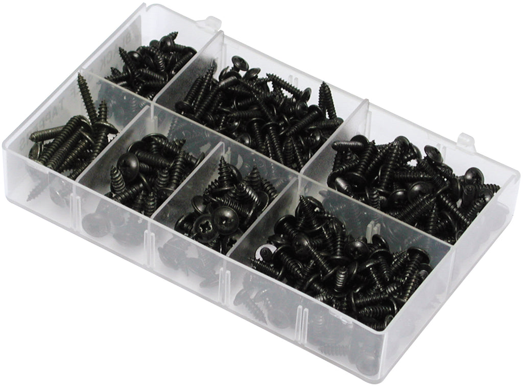 Chemical black. Sizes: No. 6 x 1/2", 3/4". No. 8 x 1/2", 3/4", 1 1/4". No. 10 x 1/2", 3/4"