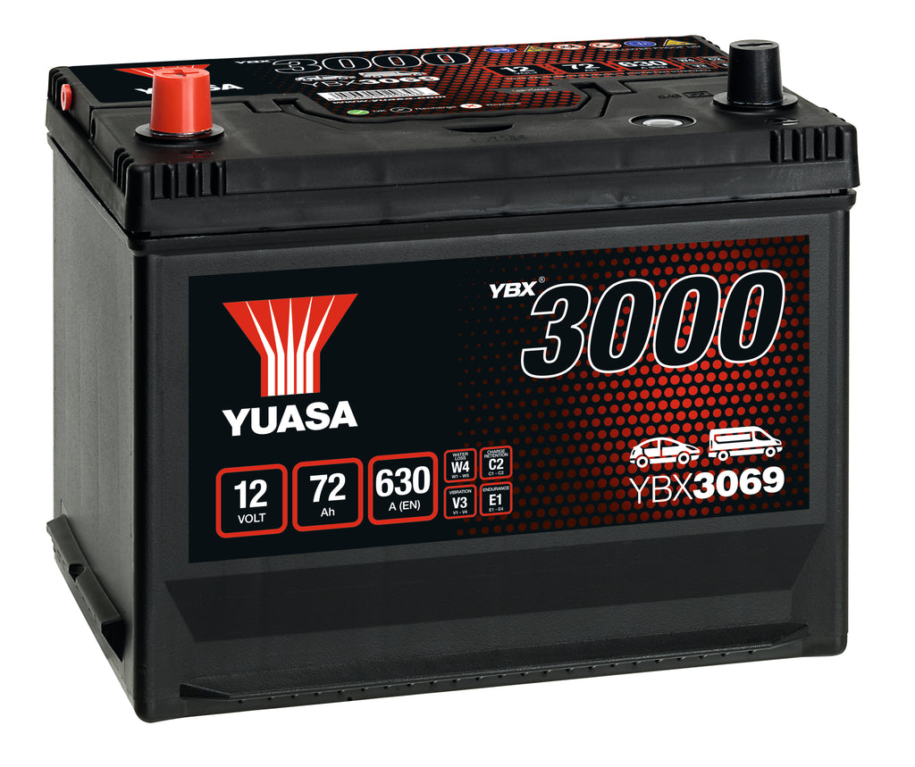 YBX3069 12V 72Ah 630A Yuasa SMF Battery. Japanese/Korean JIS Type